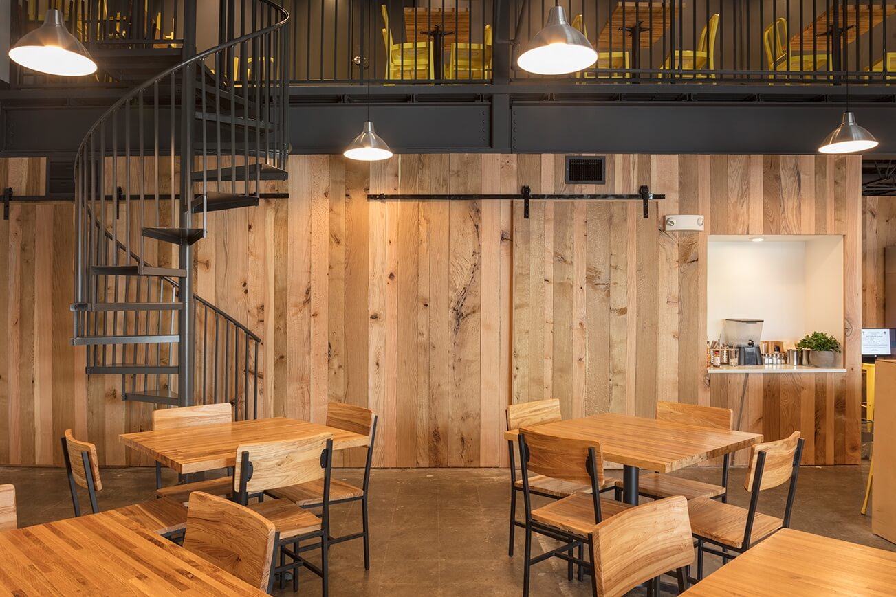 Having designed The Sundry’s original location in the Crossroads, Helix Architecture + Design was asked to lead the design of their new location. A local gathering space, The Sundry sells groceries, food and drinks to those working in the building as well as the surrounding neighborhoods. At The Sundry, guests have access to a full coffee and cocktail bar perfect for meetings or unwinding with friends. They can also take advantage of made-from-scratch, prepared meals at the on-site market.